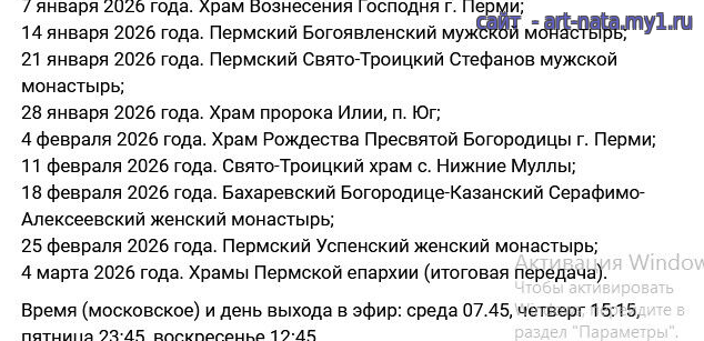 Эфиры в храмах Нашего края на Союзе