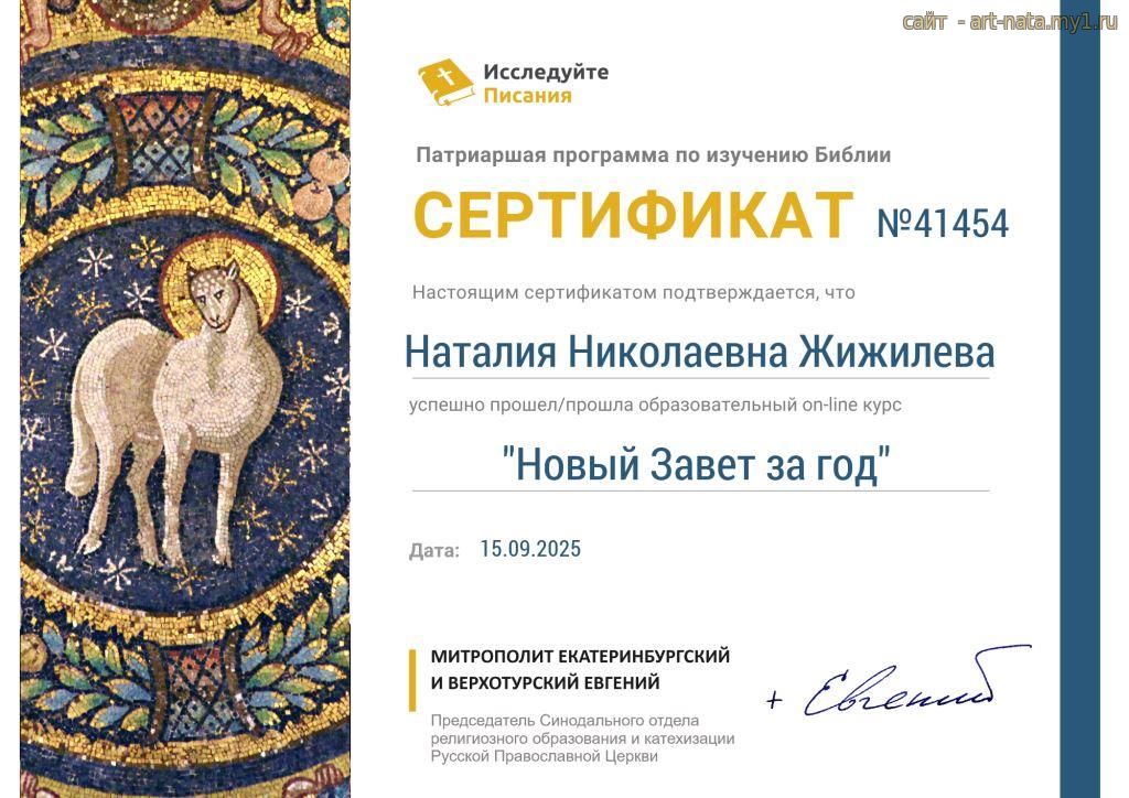 89. Сертификат - Курс Новый Завет за год. Диплом №41454. сентябрь2025